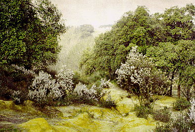 La macchia a Erica e Cisto che abbiamo rilevato è situata presso la sommità della collina mediana su un pendio molto acclive con esposizione a Sud-Ovest. Il suolo è sabbioso ricoperto per l' 80% da arbusti con altezza media di 2,5 m, da erbe per il 15% e per il restante 5% è privo di vegetazione. Le specie caratteristiche in questo tipo di macchia sono: Radica (Erica arborea), Cisto femmina (Cistus salvifolius), Salsapariglia nostrana (Smylax aspera), Ginestra (Spartium junceum), Mirto (Myrtus communis), Ilatro comune (Phillyrea latifolia), Gigaro (Arum maculatum), Canna del Reno (Arundo pliniana), Avena barbata (Avena barbata), Asfodelo (Asphodelus microcarpus), Sonaglini (Briza maxima), Trifoglio campestre (Trifolium campestre). Questa macchia si sviluppa con facilità in terreni acidi, dove il pascolo e gli incendi hanno ridotto la copertura arborea e favorito la diffusione di questa associazione vegetale. Nella Collina Mediana abbiamo osservato che questa vegetazione è frequente nei versanti ai margini dei boschi di sughera, e nelle radure. E' facile osservarla anche sui terreni sabbiosi soggetti ad erosione, ai margini di profondi solchi, ove svolge una azione di contenimento del fenomeno erosivo. Durante le escursioni abbiamo potuto apprezzare le bellissime fioriture primaverili dell'Erica arborea seguite da quelle del Cisto. La macchia a Erica e Cisto è costituita da specie tipiche sia della macchia a cisto che della sughereta, infatti si tratta di una associazione vegetale che, se lasciata indisturbata, potrebbe evolvere verso il bosco di Sughera.